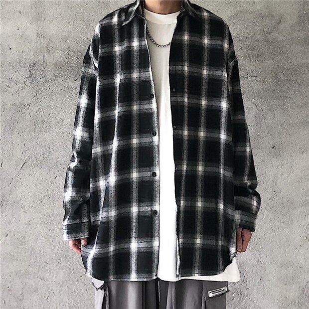 オータムスタイルスタンダード格子柄シャツ ルーズジャケット レディース ロング レトロ ストリート 秋物 Brother_is_Style67912758091