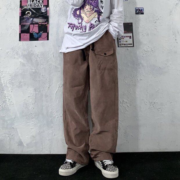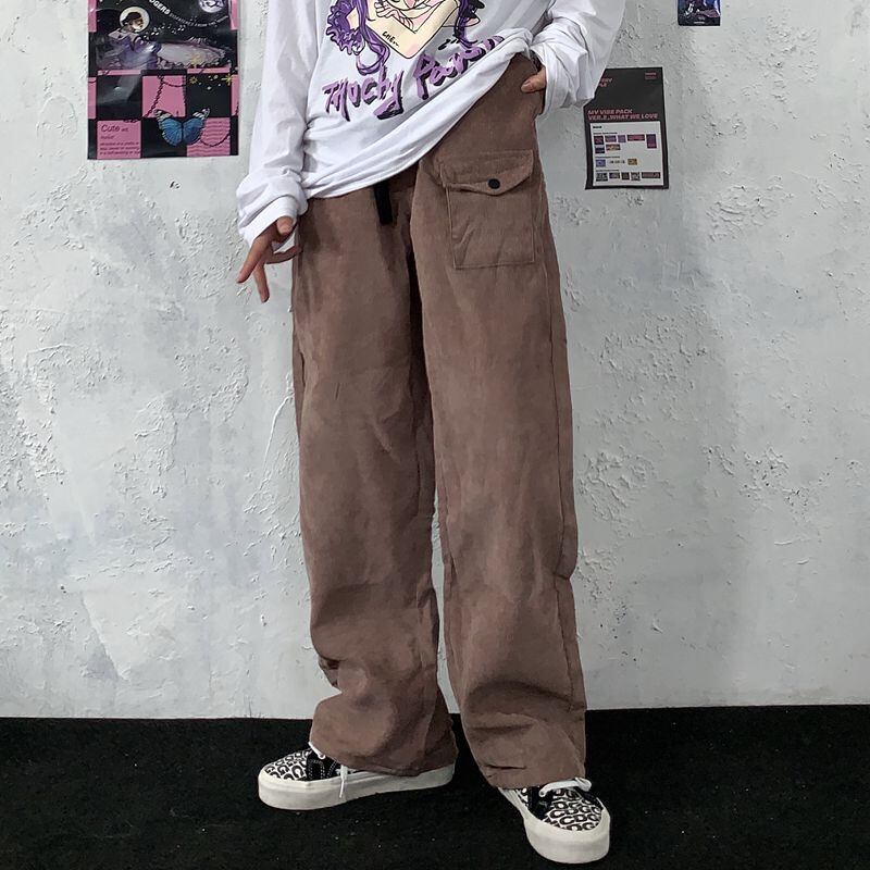 パンツ レディーススタンダードコーデュロイルーズハイウェストウェストカジュアル レトロ Brother_is_Style23217231238