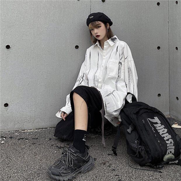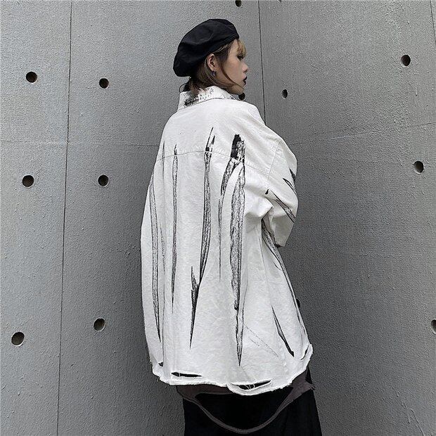 オータムスタイルスタンダードシャツ ルーズホワイトジャケット ロング レトロ かわいい 秋物 Brother_is_Style36913768751