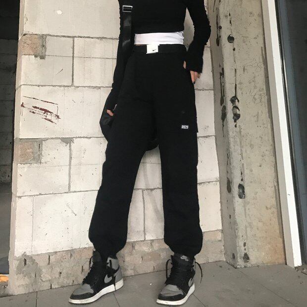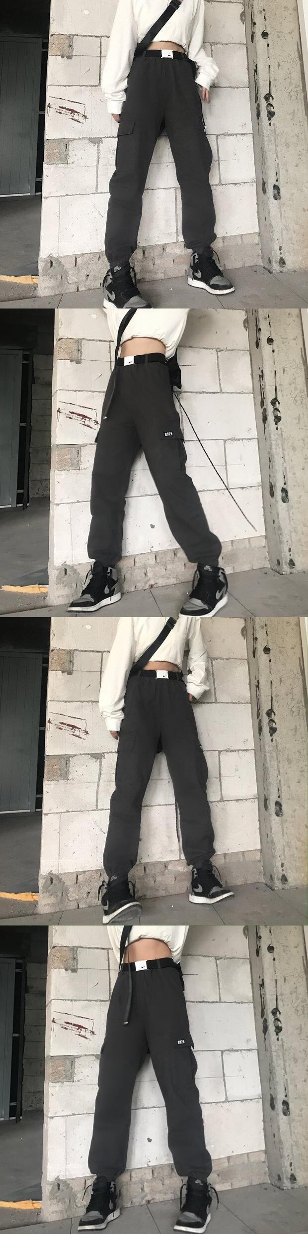 パンツ ブラックルーズハイウェストウェストスリムカジュアル Brother_is_Style12952537925