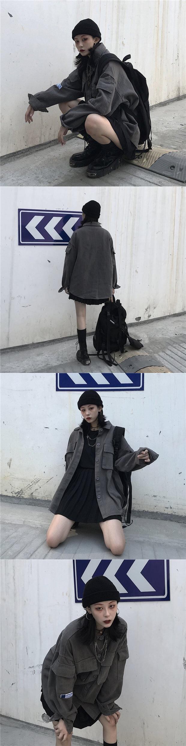 ジャケット オータムスタンダードカジュアルルーズ長袖スリーブトップス ロング レトロ 秋物 Brother_is_Style72110869094