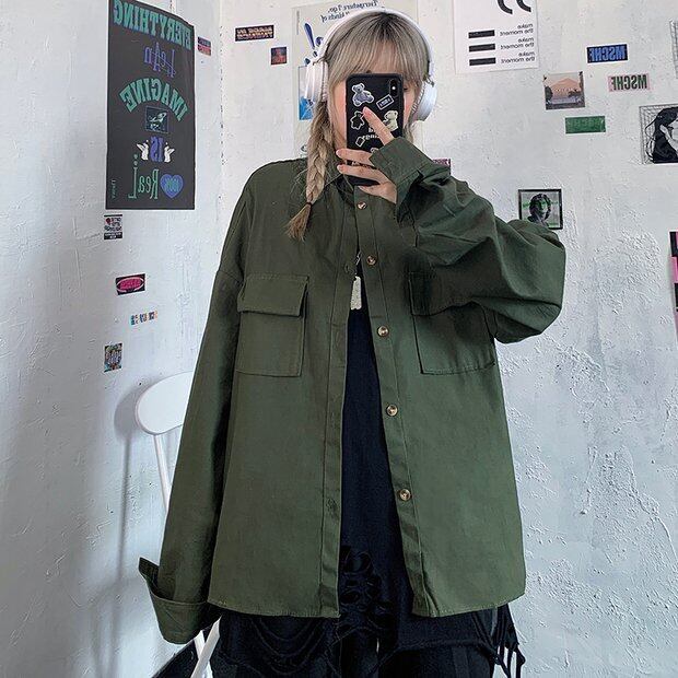 シャツ レディースオータムスタイルルーズソリッド カラージャケット ロング 秋物 ソリッドカラー Brother_is_Style59447322145