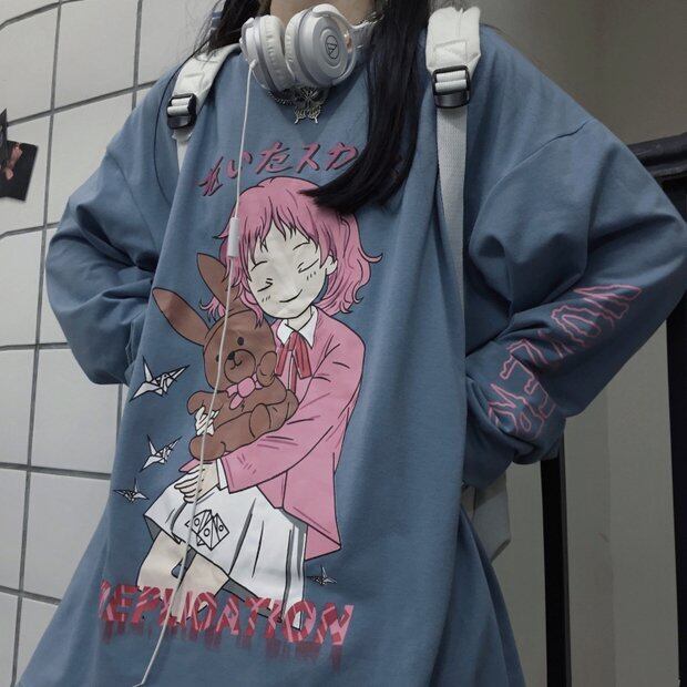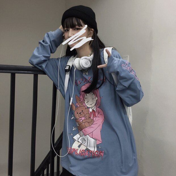 Tシャツ シャツ オータムプリントルーズラウンドネック ロング 秋物 Oネック Brother_is_Style58731296976
