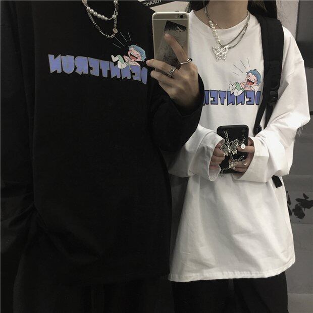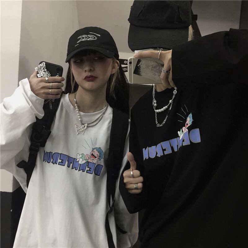 2020年秋新バージョンのins楽しい漫画の手紙を印刷する白いトップルーズ長袖Tシャツの男性と女性 Brother_is_Style70061856130