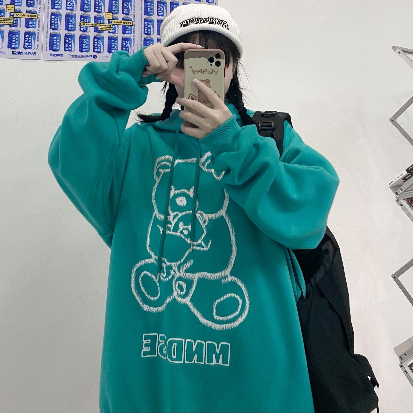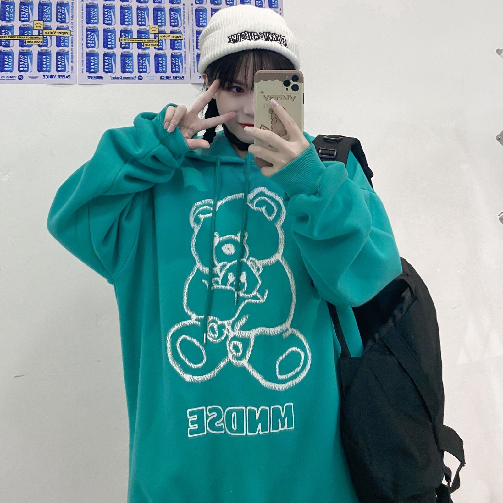 2020年の新しい秋冬バージョンのイン香港ウィンドベアフード付きジャケットコートルーズプラスベルベットの厚いセーターの女性のトレンド Brother_is_Style75570855531