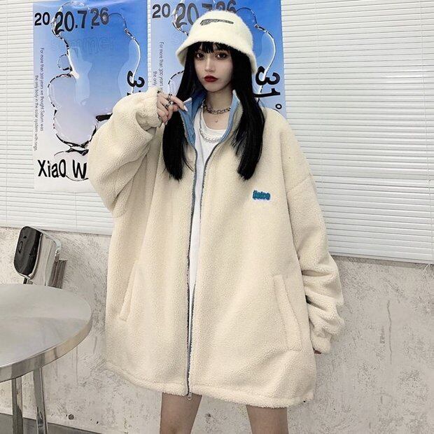 両面ジャケットレディース2020新しい冬バージョンインルーズワイルドラムウール厚手のコットンパッド入りコート Brother_is_Style94002313076