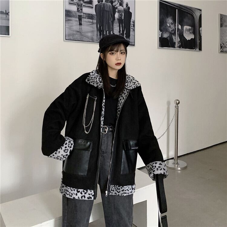 ラムウールコートレディース2020年冬新バージョンはゆったりとしたヒョウ柄の厚手のパッド入りコットンコート Brother_is_Style69746520338