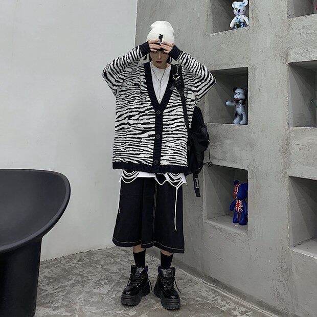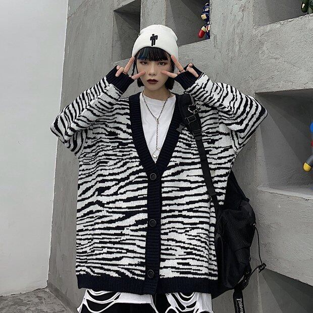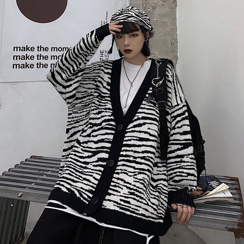 2020年の女性の新しい秋と冬のバージョンは怠惰なゼブラプリントカーディガンジャケットルーズニットセーターセータートレンド Brother_is_Style76662717148