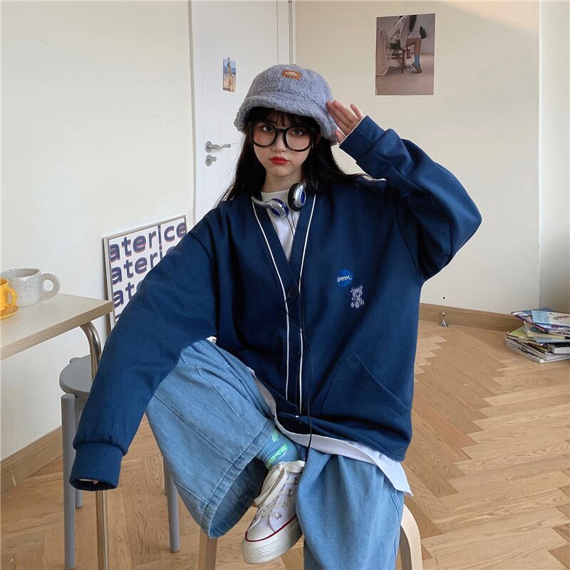 2020年秋冬新バージョンのins漫画刺繡Vネックカーディガンジャケット学生ルーズ長袖セーター女性トレンド Brother_is_Style28614993666