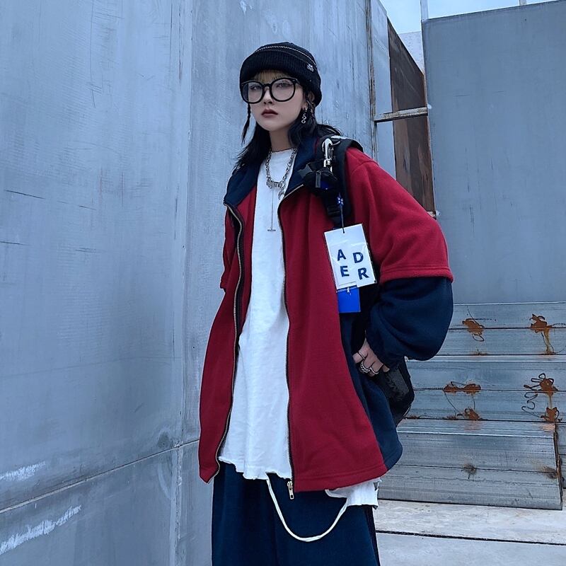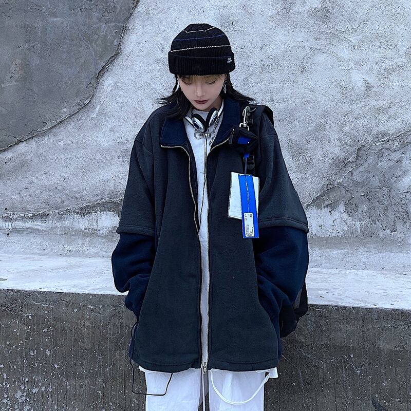 2020年の新しい女性の秋と冬のバージョンのins香港スタイルの偽の2つのルーズトップスの学生カーディガンとベルベットのジャケットの潮 Brother_is_Style77893233814