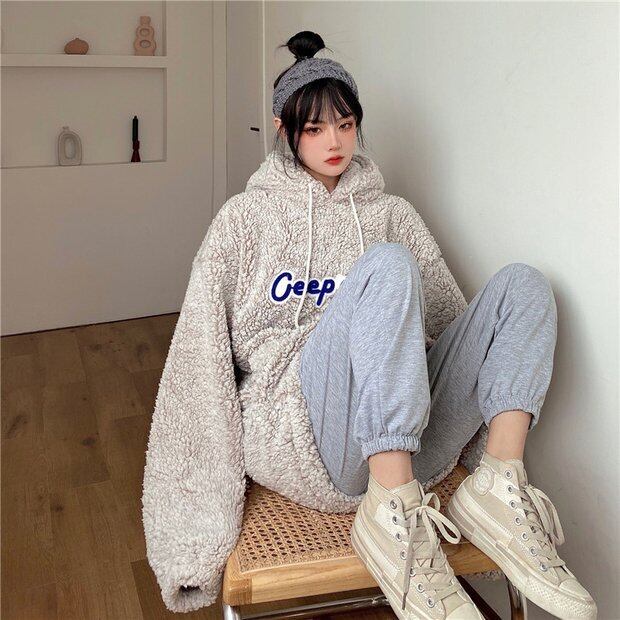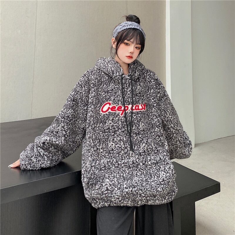 2020年秋冬新バージョン原宿風ラムウールコートルーズプラスベルベット厚手フード付きセーター女性トレンド Brother_is_Style33572210614