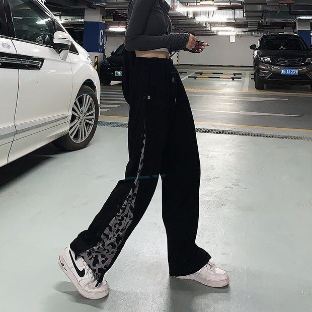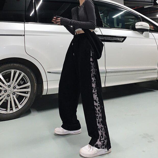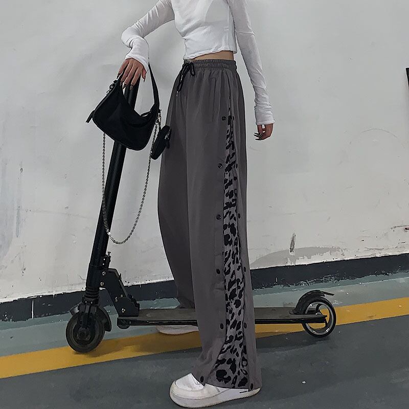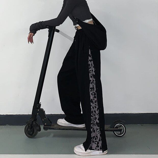 ブラックパンツウィメンズ2020新秋冬インヒョウ柄ボタンパンツルーズストレートワイドレッグパンツカジュアルパンツトレンド Brother_is_Style88861933006