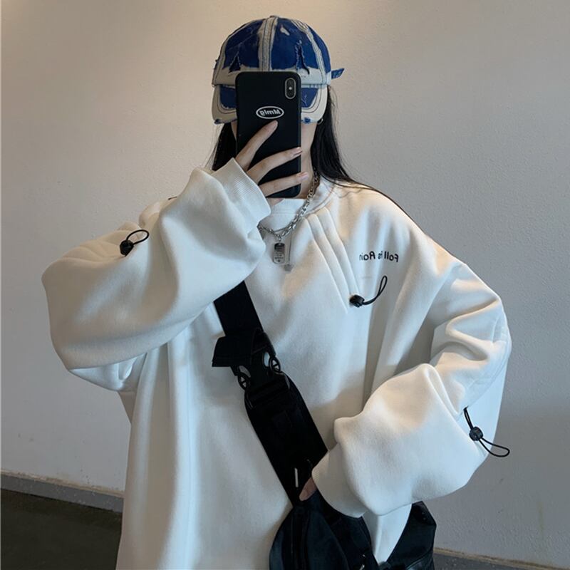 2020年秋冬の新バージョンのins香港スタイルのキャップレスラウンドネックセータールーズプラスベルベットパッド入りプルオーバーブラウスレディーストレンド Brother_is_Style37500586677