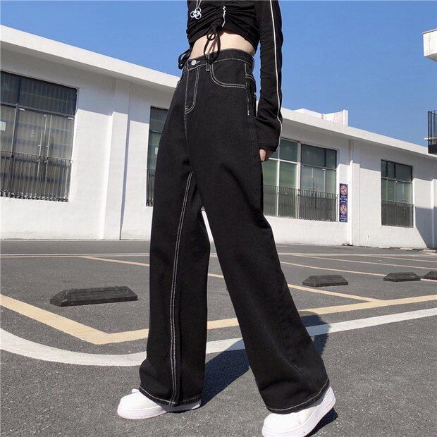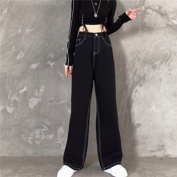 ウエストジーンズレディース2020新バージョンインブラックモッピングパンツルーズで薄いワイドレッグストレートパンツトレンド Brother_is_Style98899994409