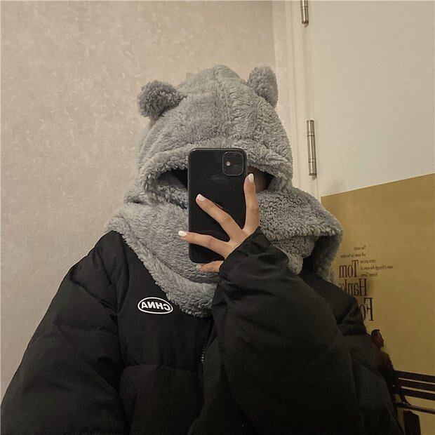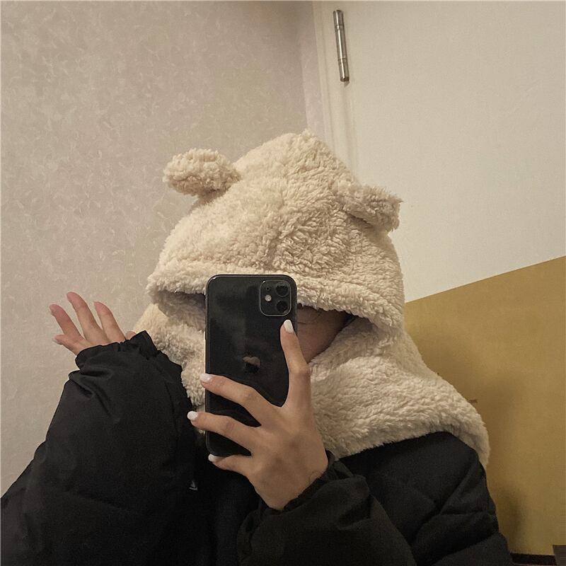 2020年の新しい秋と冬のインかわいいクマカップルイヤーマフ帽子ワイルドスカーフワンピースキャップ女性トレンド Brother_is_Style55204675650