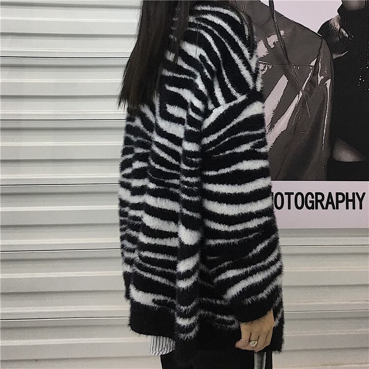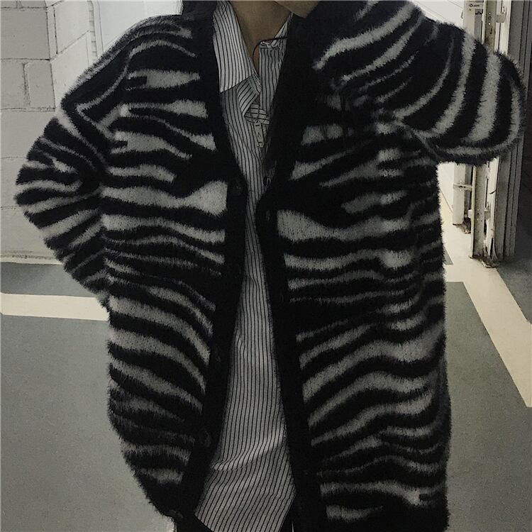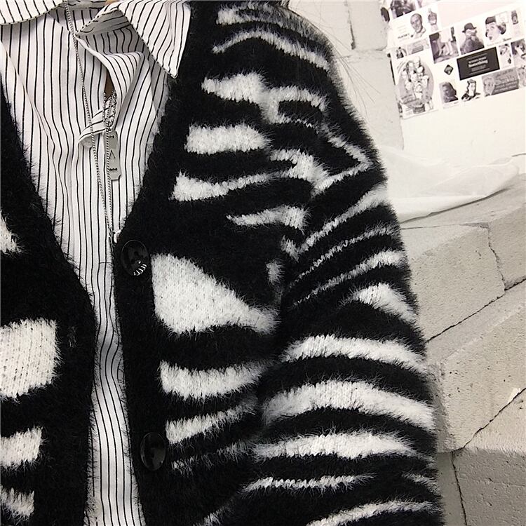 ニットセーター女性2020新しい秋と冬バージョンins怠惰な風ゼブラプリントカーディガントップルーズセーターコート Brother_is_Style39322164450