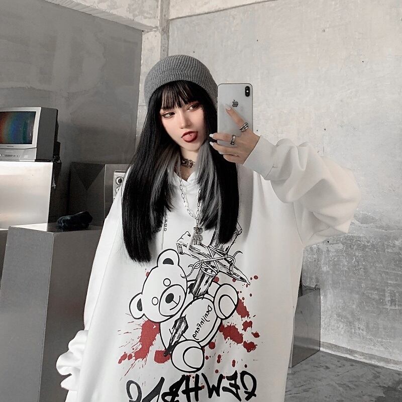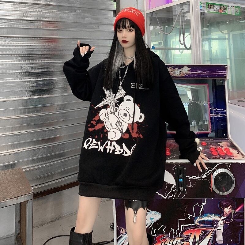2020年の新しい秋冬バージョンのインダークベアフード付きセーターコートルーズプラスベルベットの厚いトップ女性のトレンディ Brother_is_Style81971884450