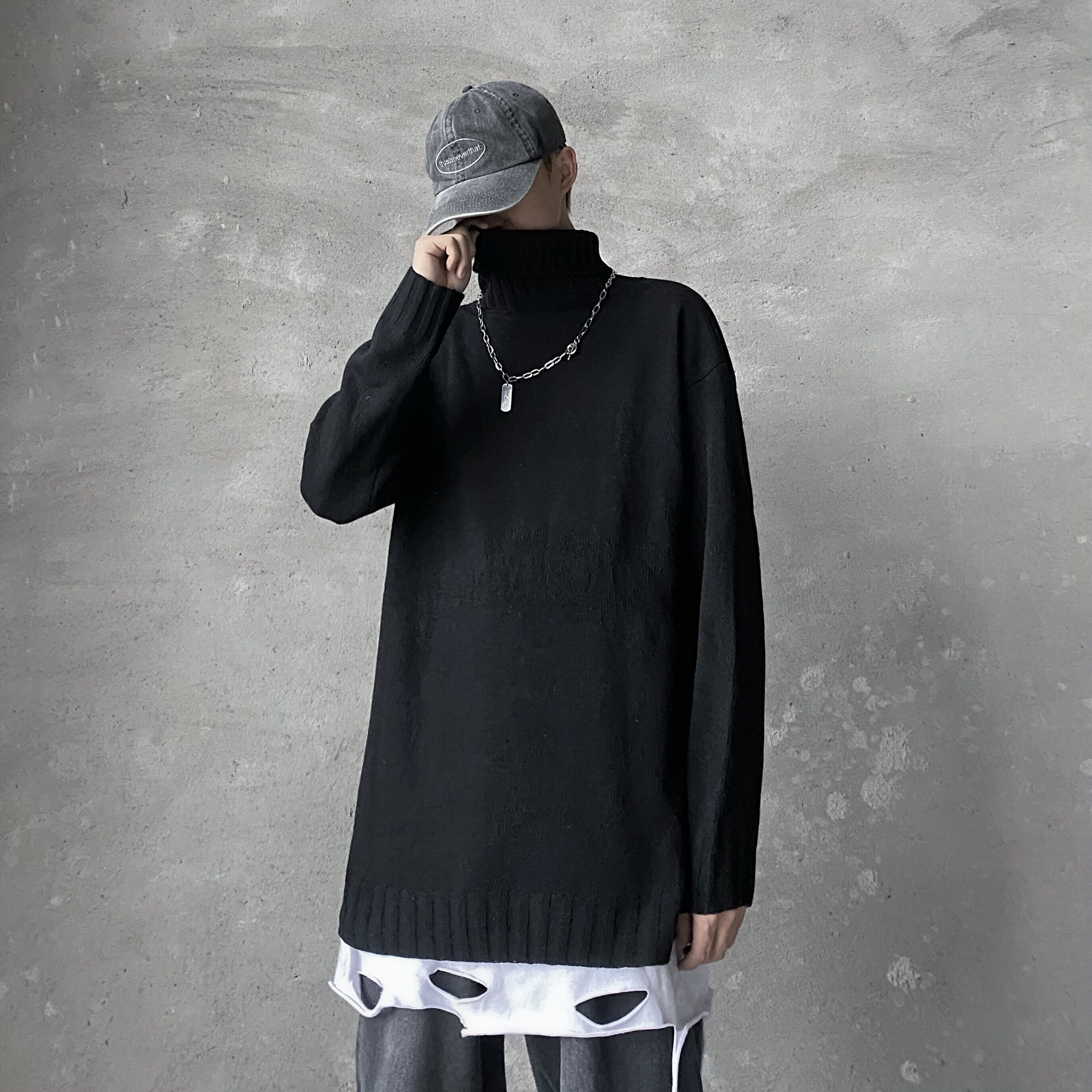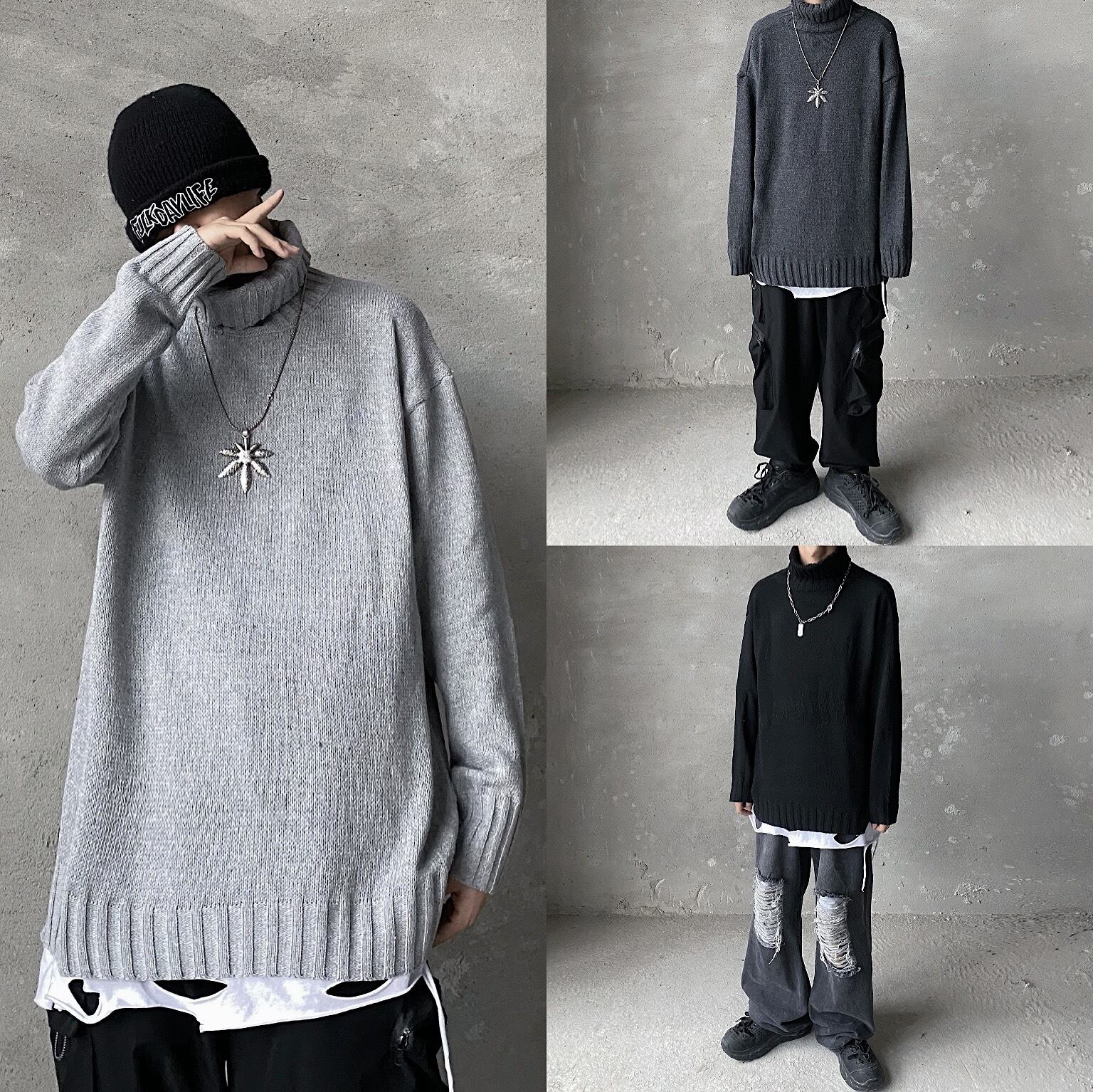 2020年の新しい秋冬バージョンのインブラックタートルネックプルオーバーセーター女性ルーズニットセーターカップルアウターウェアトップ Brother_is_Style15364630069