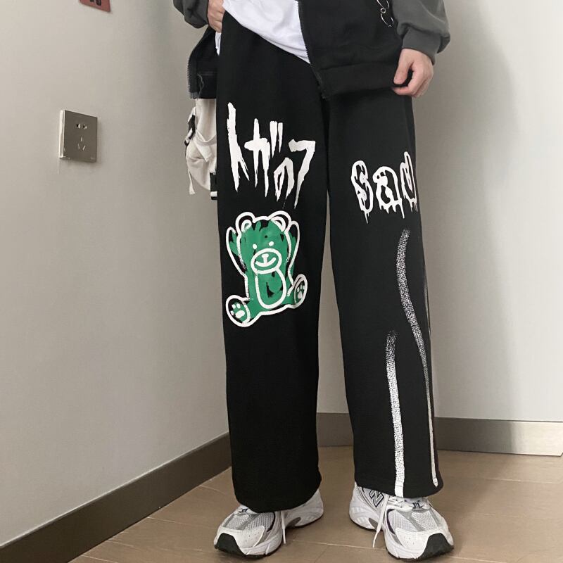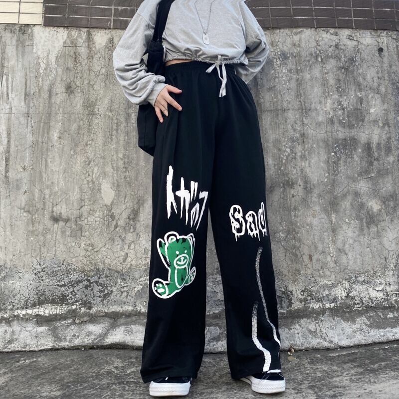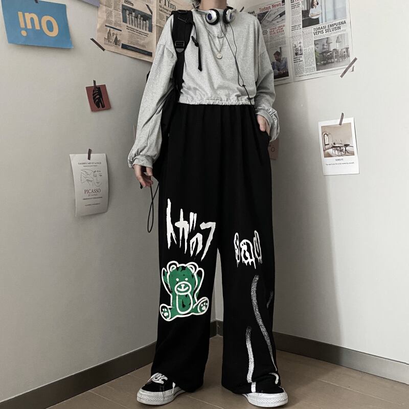 パンツレディース2020年秋冬新バージョンのイングラフィティプラスベルベットストレートワイドレッグパンツルーズブラックカジュアルパンツトレンド Brother_is_Style10926323668