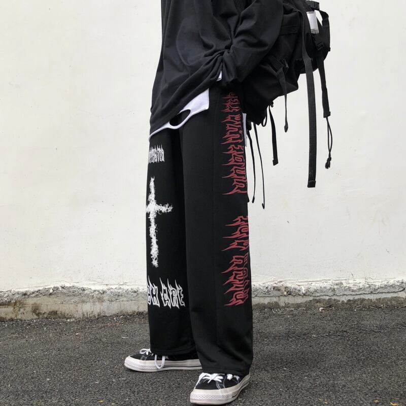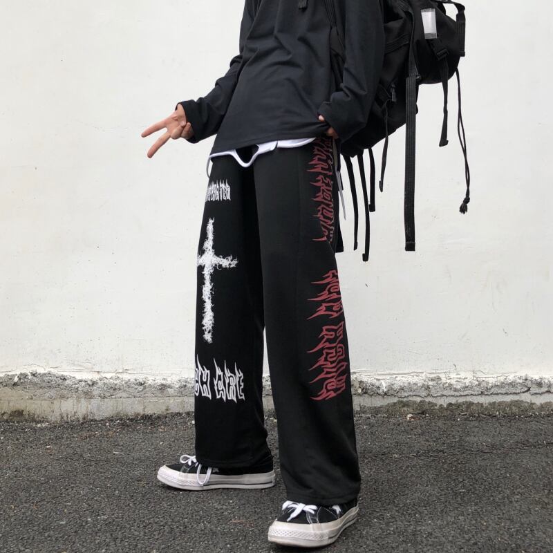 パンツレディース2020新秋冬バージョンインダークグラフィティワイドレッグパンツルーズストレートスチューデントカジュアルパンツ Brother_is_Style53574825885