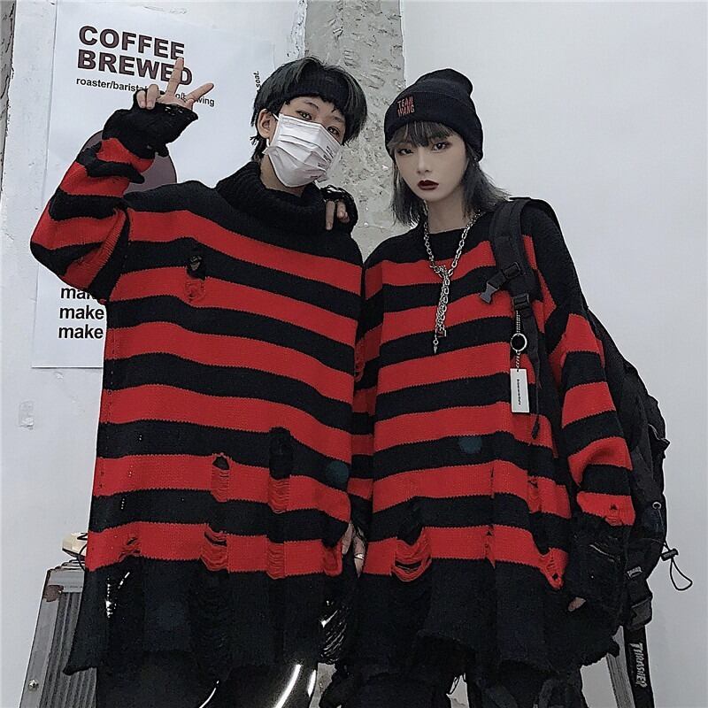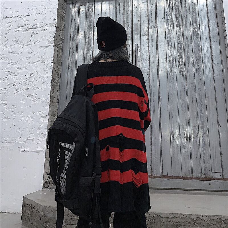 トップ女性の2020年の新しい秋と冬のバージョンは怠惰な風が壊れた銅の縞模様のセータールーズセーターのトレンド Brother_is_Style57644383602
