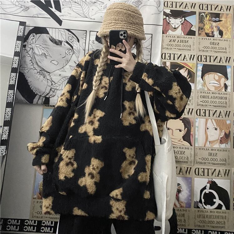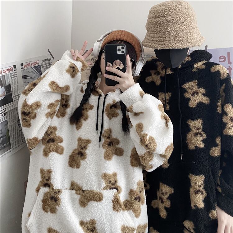 ラムウールセーター女性2020新しい秋のバージョンinsスーパーファイヤーベアルーズカップルフード付き厚手のコート Brother_is_Style36348423654