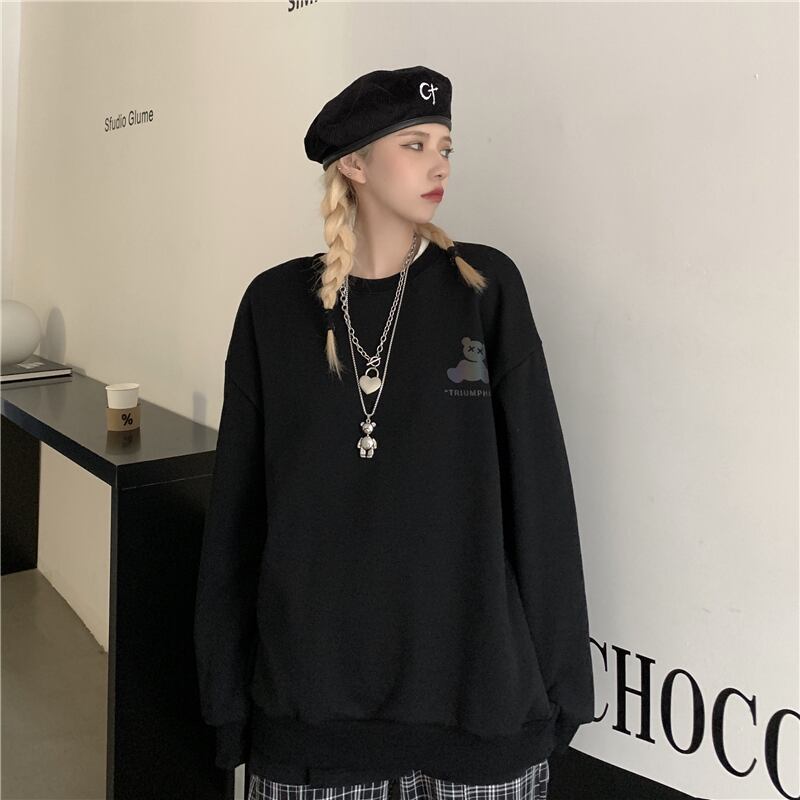 2020年秋冬新作レトロラウンドネックプルオーバーベアカップルトップルーズフードレスプラスベルベットセーター女性トレンド Brother_is_Style19522387143
