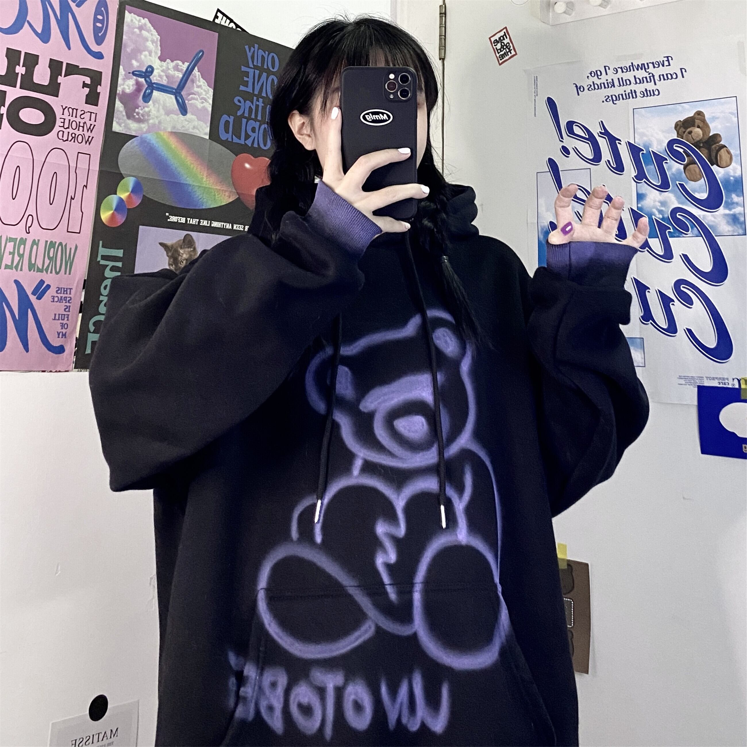 2020年の新しい秋冬バージョンのinsスーパーファイヤーベアフード付きトップルーズプラスベルベット厚のセータージャケット女性トレンド Brother_is_Style84971213437