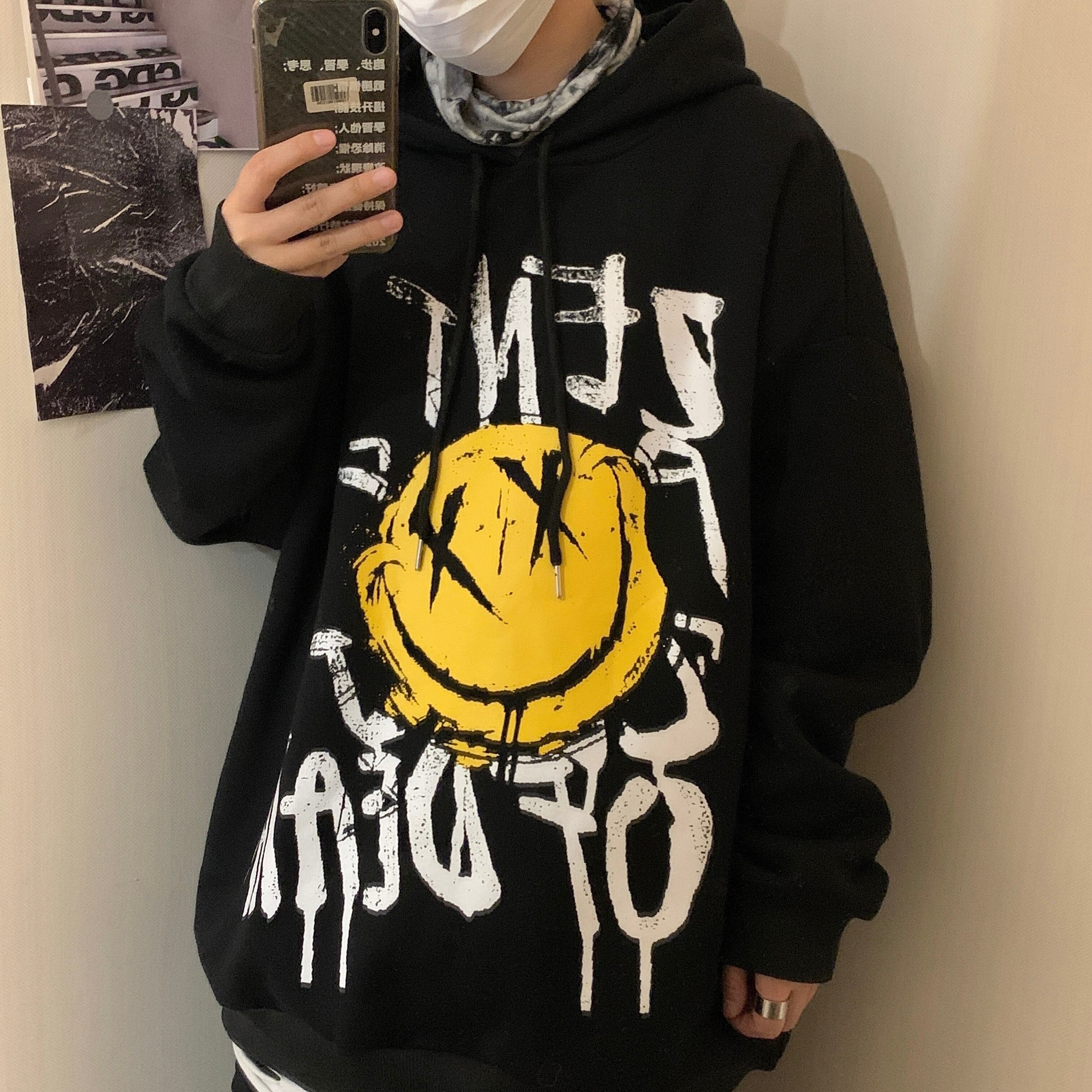 2020年秋冬新作原宿風ルーズフードセータープラスベルベット厚手のスマイリーコート男女 Brother_is_Style48104438498