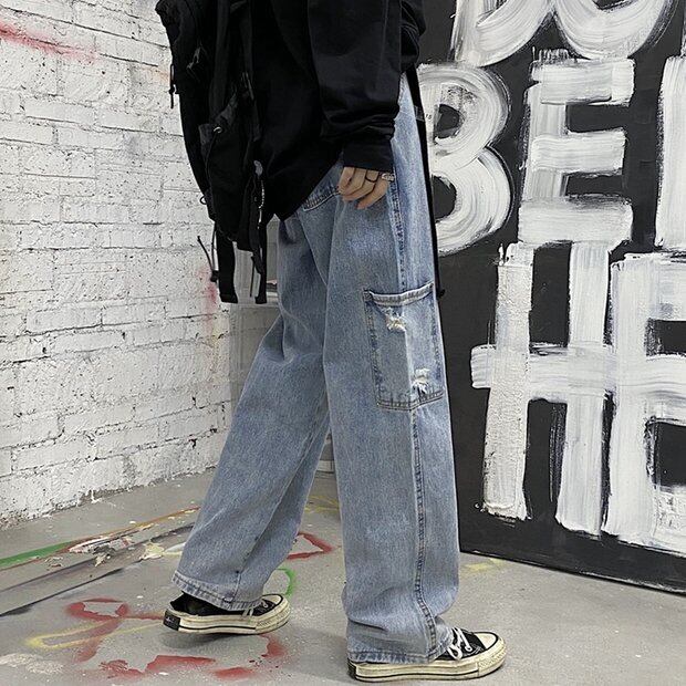 パンツレディース2020新バージョン原宿風穴ツーリングストレートパンツルーズワイドレッグジーンズトレンド Brother_is_Style24523498594