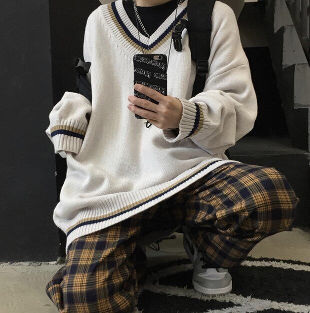 2020年秋冬新作インレイジースタイルVネックニットトップルーズアウタープルオーバーセーターメンズ&レディース Brother_is_Style91693989811