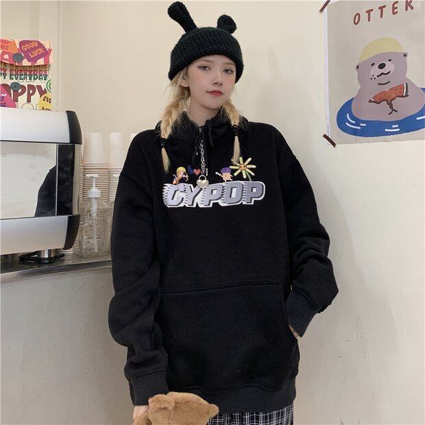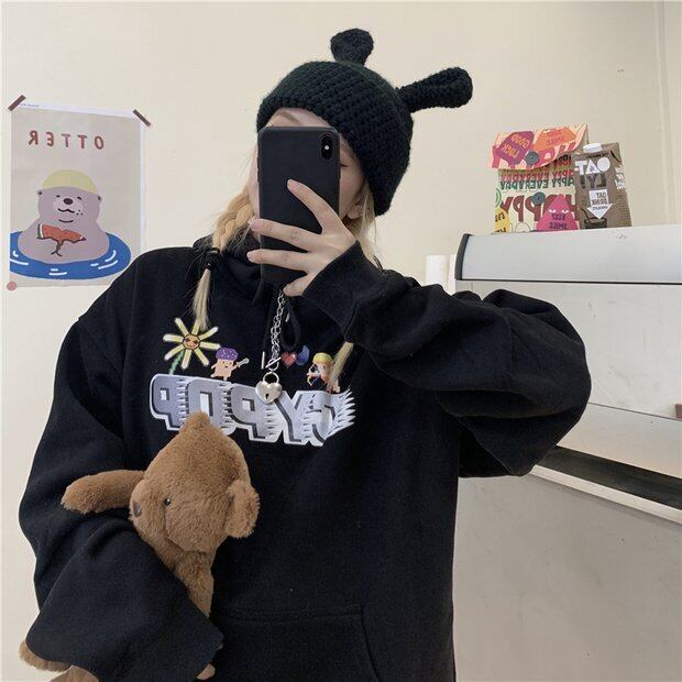 2020年秋冬新バージョン原宿風フード付きセータールーズプラスベルベット厚手のブラックジャケットレディーストレンド Brother_is_Style18972361229