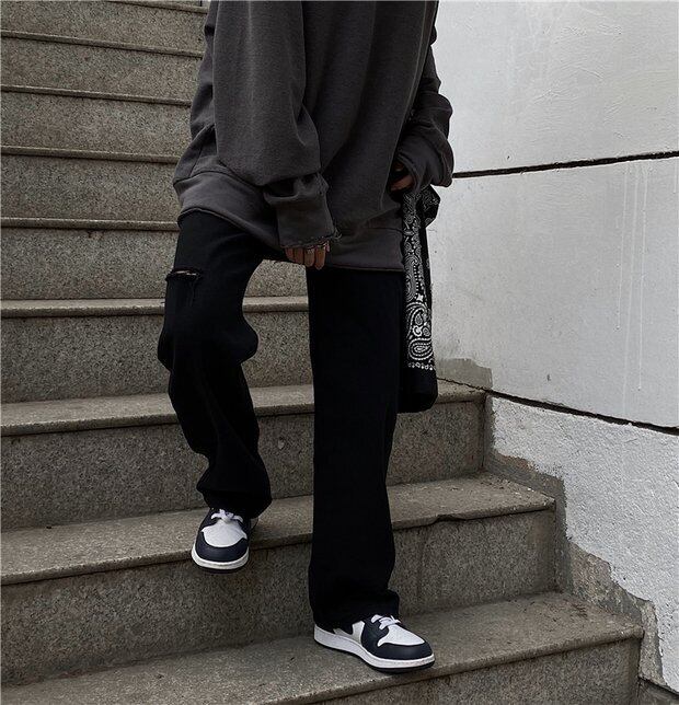 パンツレディース2020新秋冬バージョンインブラック破れたジーンズルーズハイウエストストレートワイドレッグパンツ Brother_is_Style73834913330