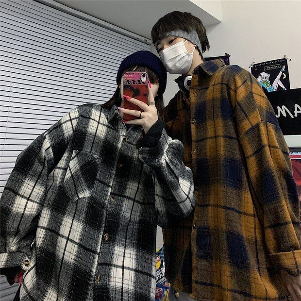 2020年秋冬バージョンインレトロチェック柄カップルウールシャツルーズカジュアルシャツジャケット女性トレンド Brother_is_Style2869373372