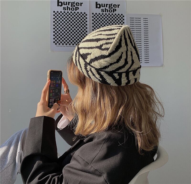 2020年秋冬バージョンインレトロゼブラ柄ドームハットニットウールハットメロンレザーハットメンズ&ウィメンズトレンド Brother_is_Style21757652294