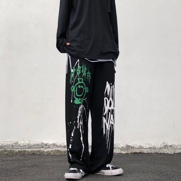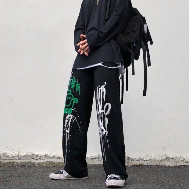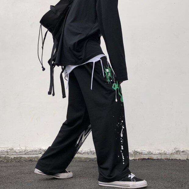 パンツレディース2020新秋冬バージョンイングラフィティストレートワイドレッグパンツルーズブラックスポーツカジュアルパンツ Brother_is_Style35927050330