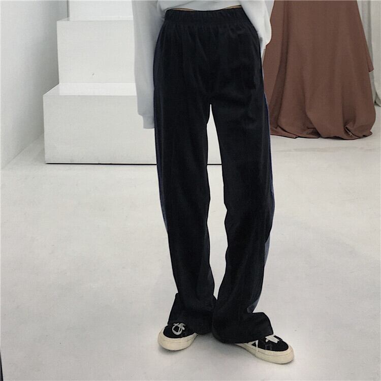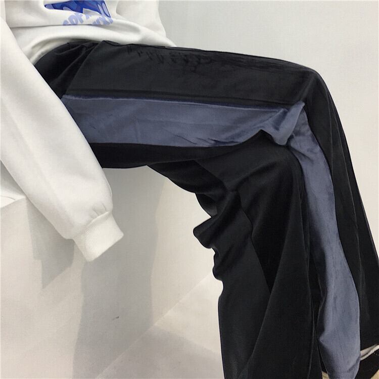 2020年新バージョンのinsカラーマッチングベルベットスリミングストレートワイドレッグパンツブラックルーズカジュアルパンツパンツレディーストレンド Brother_is_Style5862783746