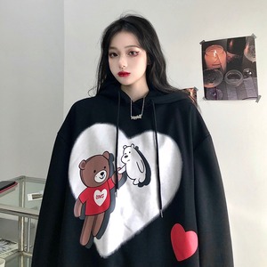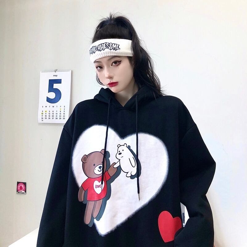 2020年秋冬の新バージョンのins漫画クマフード付きセータールーズブラックプラスベルベット厚手のコート女性トレンド Brother_is_Style8025075497