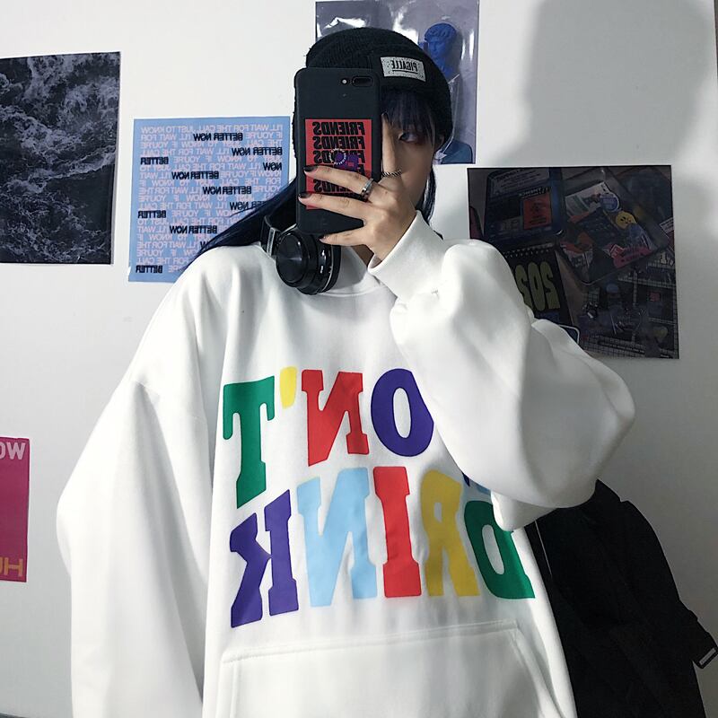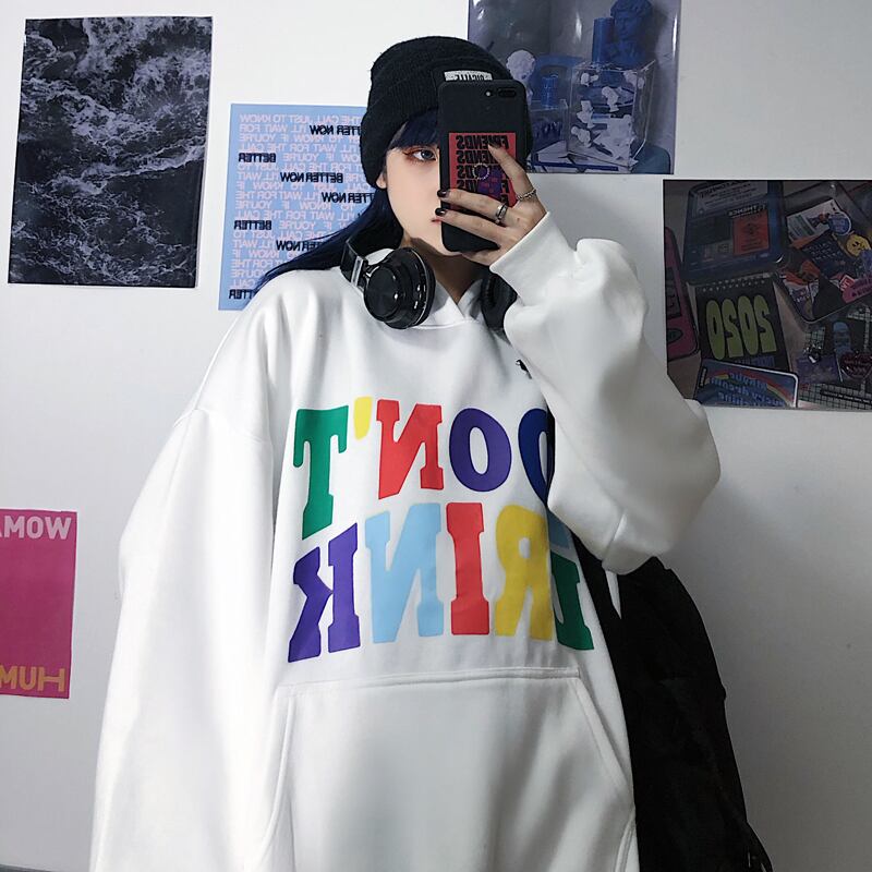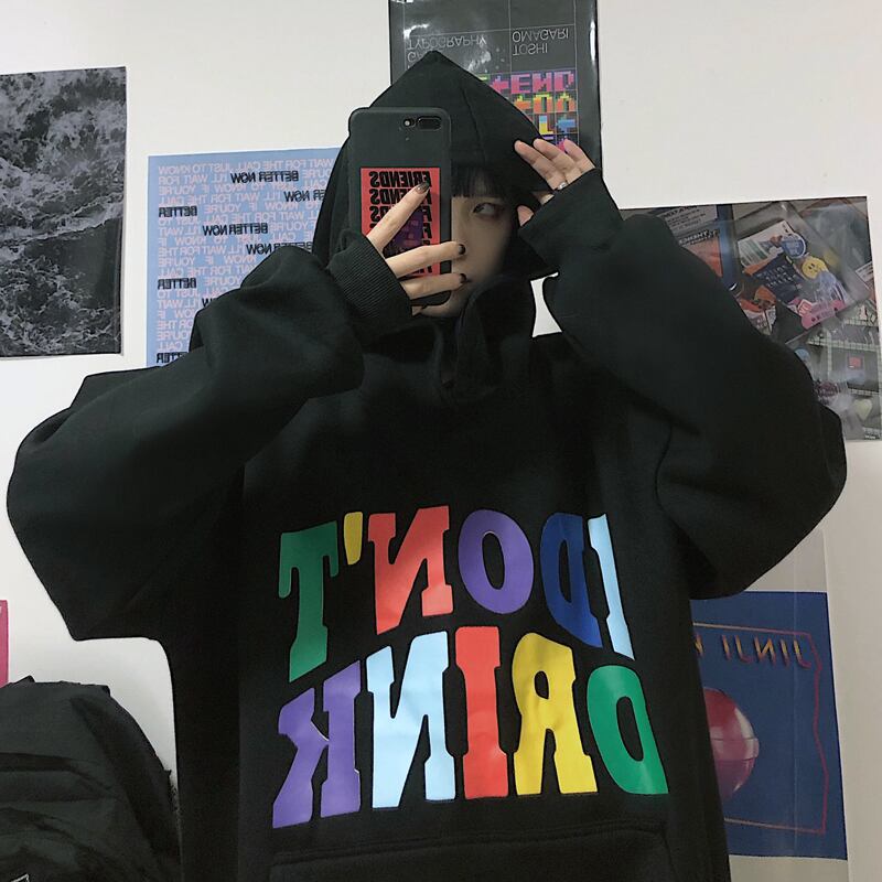 2020年の新しい秋冬バージョンのins香港スタイルのレターブラックフード付きセータールーズプラスベルベット厚手のコート女性トレンド Brother_is_Style80734254450