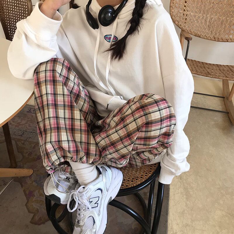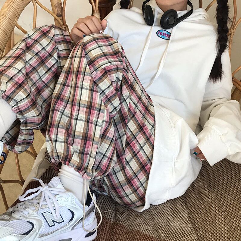 パンツレディース2020新秋冬バージョンインレトロラティスビームパンツルーズストレートパンツカジュアルパンツトレンド Brother_is_Style9020025986