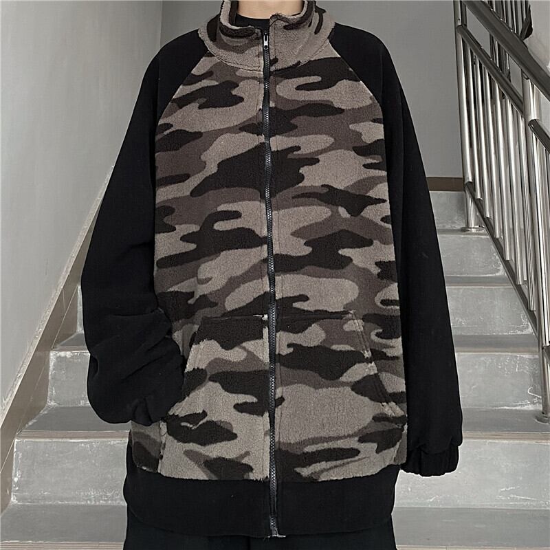 2020年秋冬新バージョンのinsカラーマッチングカモフラージュラムベルベットセータールーズシックカーディガンジャケットメンズ&レディーストレンド Brother_is_Style40384390418