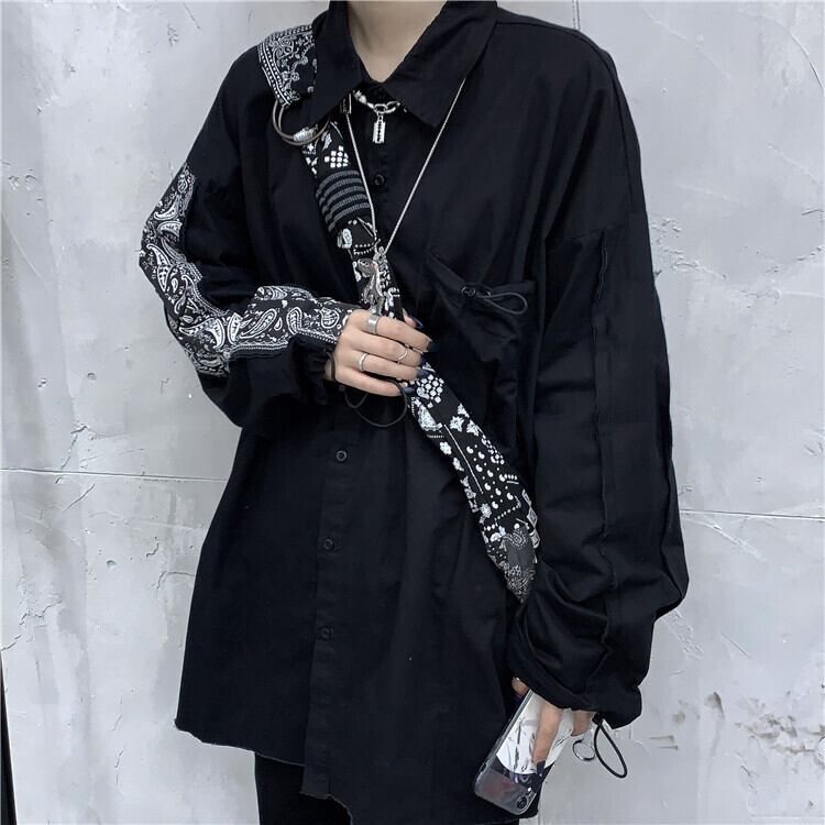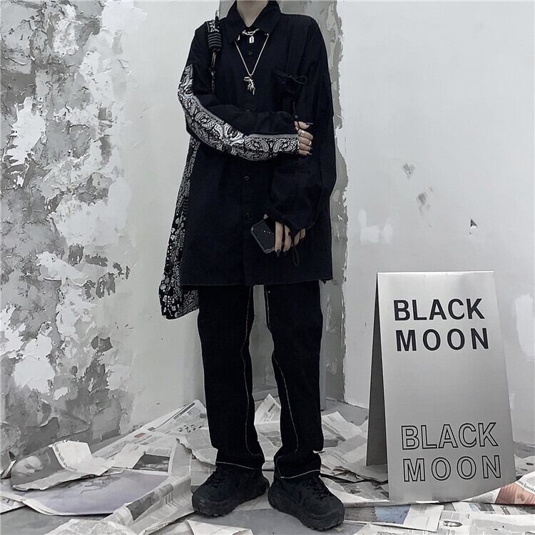 シャツ レディースオータムウィンタースタイルスタンダードブラックルーズジャケット ロング レトロ 秋物 冬物 Brother_is_Style97862609314