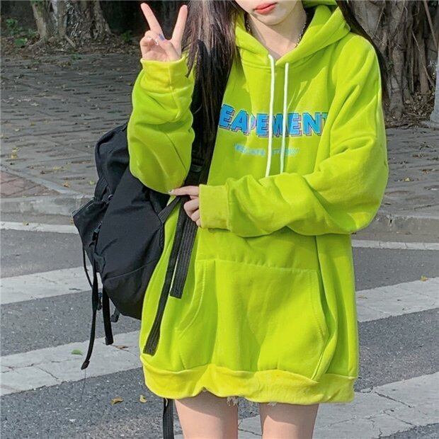 オータムウィンタースタイルベルベットフードトップス ルーズグリーンセーター ジャケット 秋物 冬物 Brother_is_Style28303297081