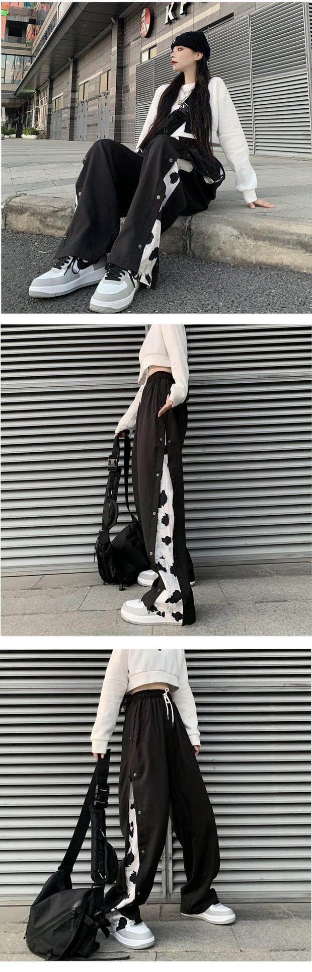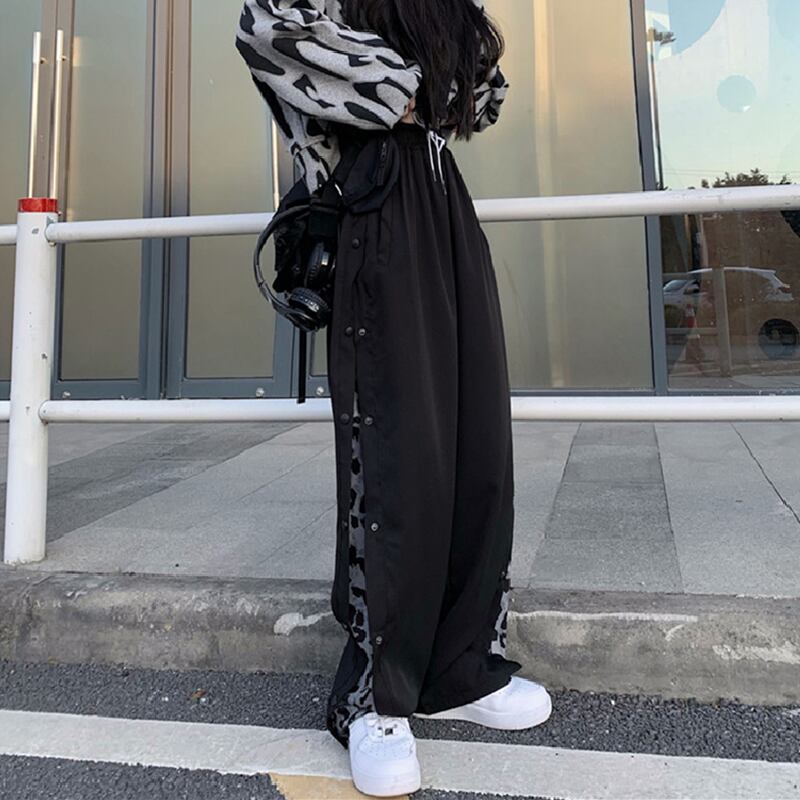 パンツ オータムウィンターダークレオパードルーズハイウェストウェストワイドレッグ 秋物 冬物 ワイドパンツ Brother_is_Style35094376215