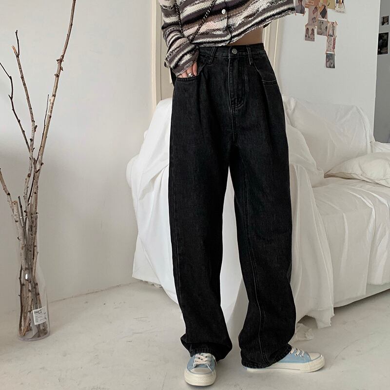 ブラックパンツ ルーズハイウェストウェスト薄手ジーンズ ウィンター 冬物 Brother_is_Style85188130516