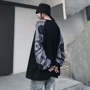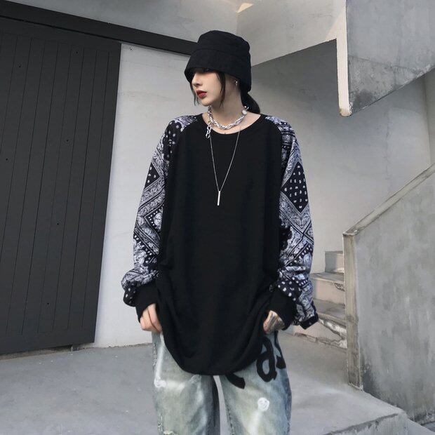 オータムウィンタースタンダードFlowerデザイン ホワイトトップス ルーズラウンドネック長袖スリーブTシャツ ロング レトロ 秋物 冬物 Oネック フラワーデザイン Brother_is_Style79345120657