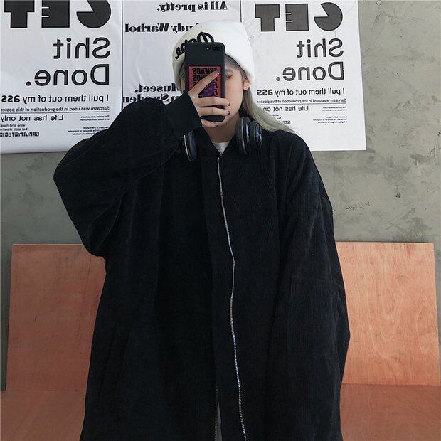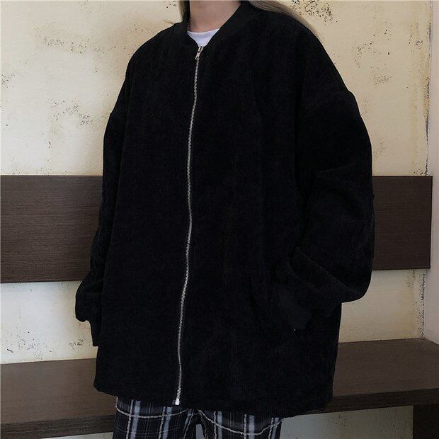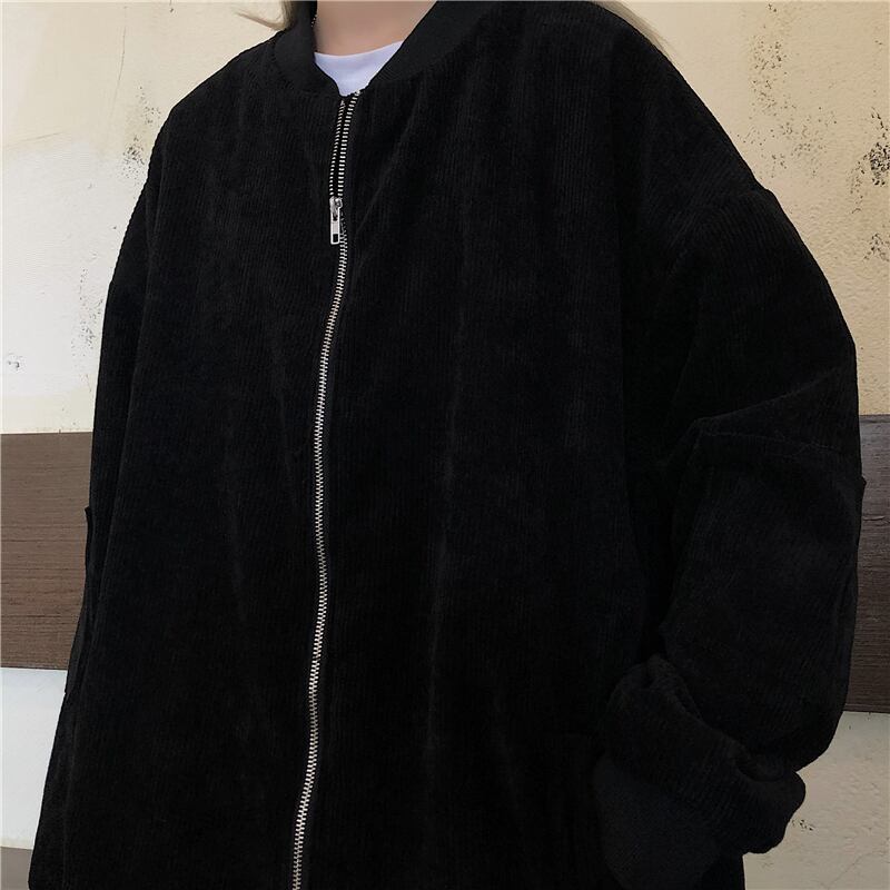 オータムウィンターコーデュロイカーディガンジャケット ルーズブラックトップス 秋物 冬物 Brother_is_Style69598790949