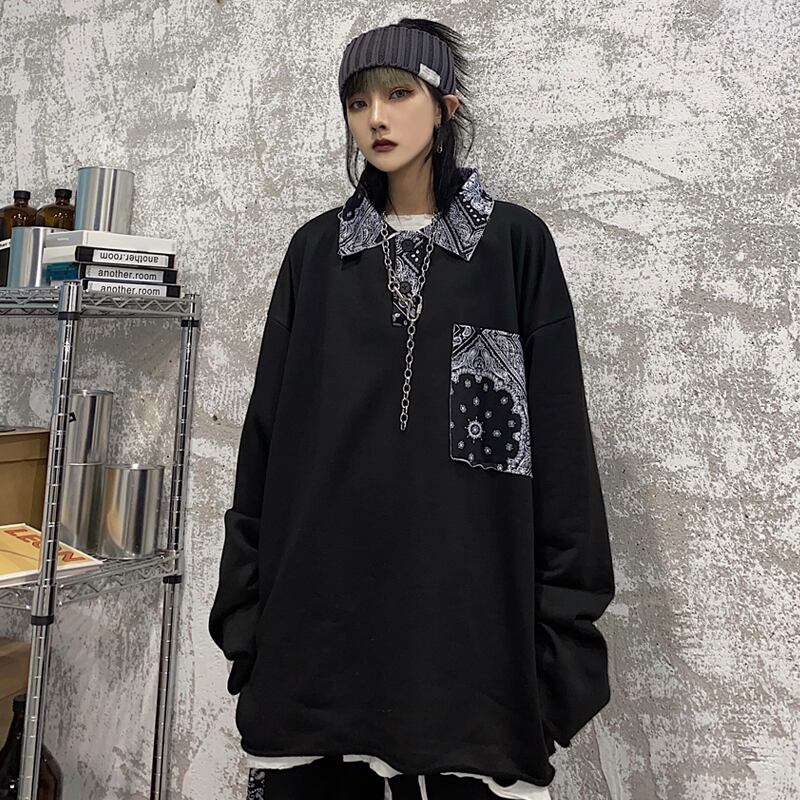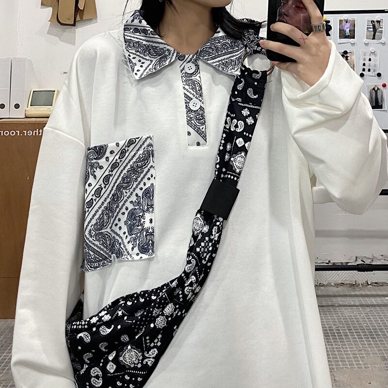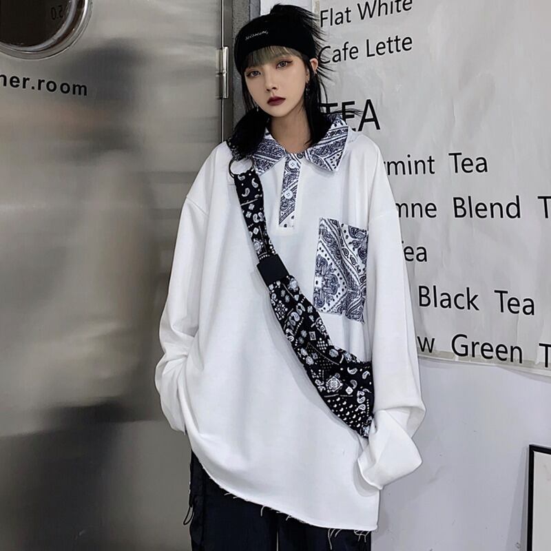 オータムウィンタースタンダードホワイトプルオーバー ブラウス ルーズセーター レディース レトロ 秋物 冬物 ステッチ Brother_is_Style21062826736