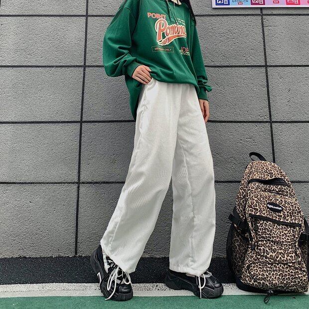 オータムウィンタースタンダードコーデュロイワイドレッグパンツ ルーズハイウェストウェストカジュアルレディース レトロ 秋物 冬物 ワイドパンツ Brother_is_Style96832840071