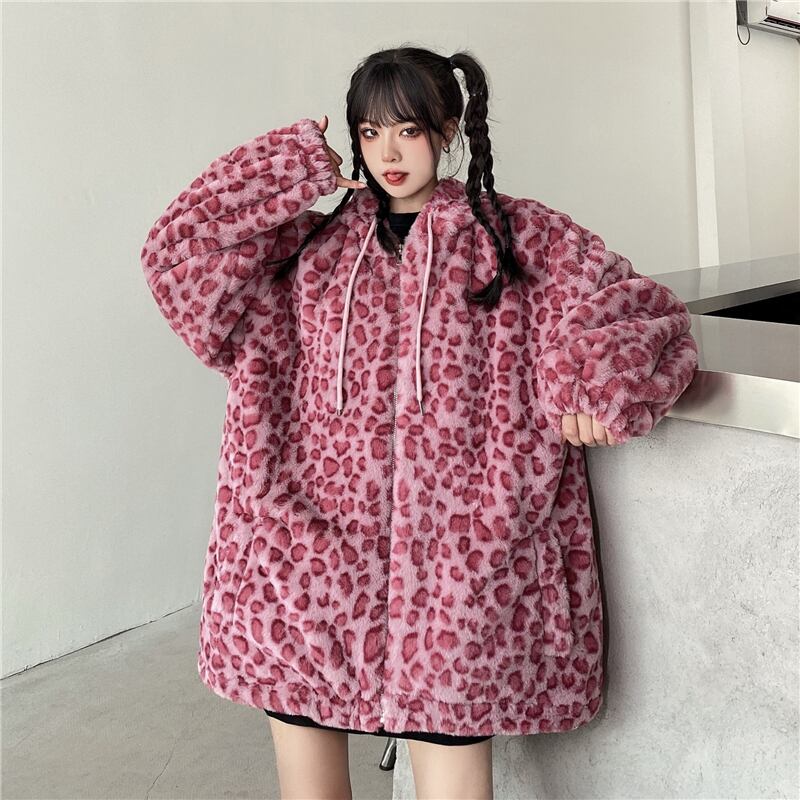 ジャケット レディースウィンターレオパードウールルーズフード コットン 冬物 Brother_is_Style53128070836